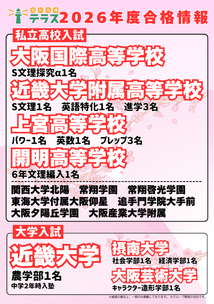 少し遅くなってしまいましたが、今年度の私立高校の合格&大学入試合格結果の速報です🌸